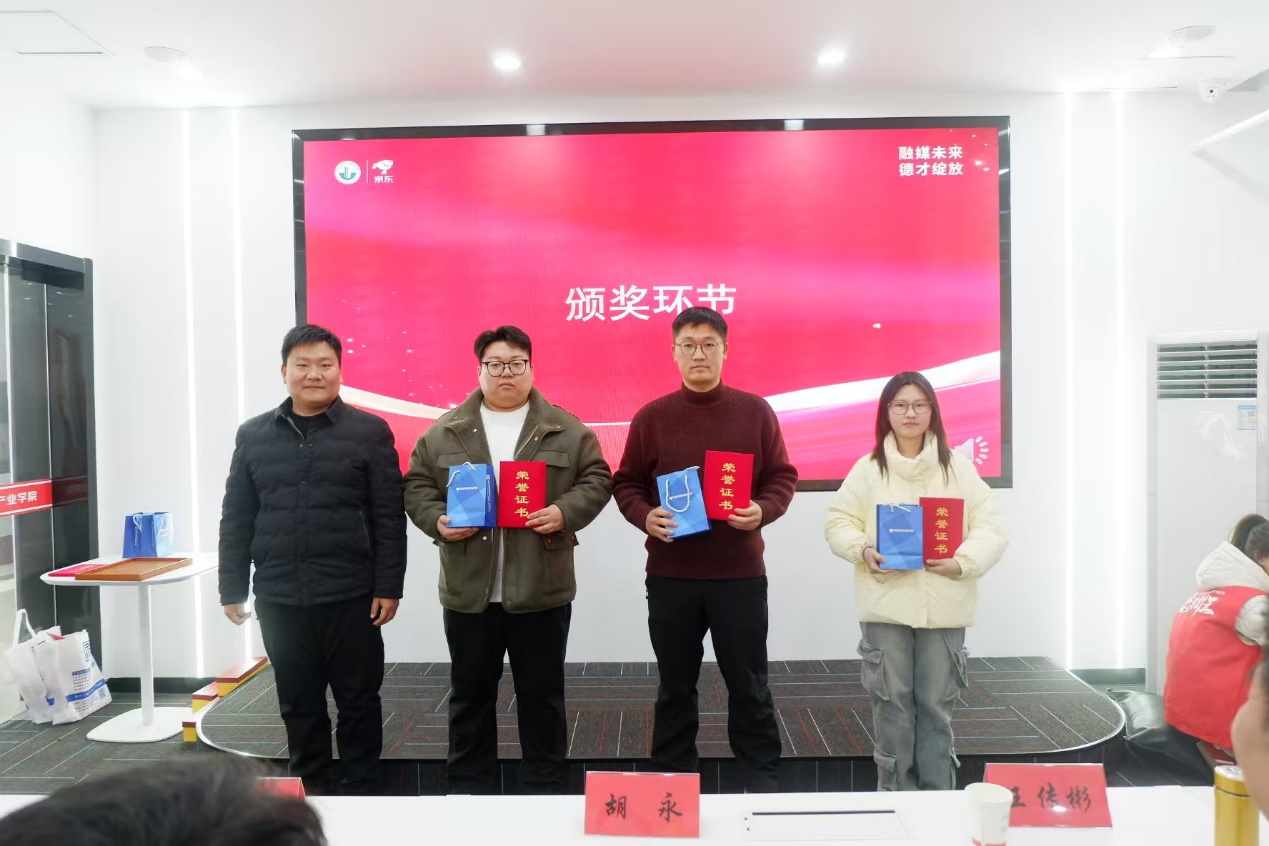 1 月 9 日下午,江苏uwin电竞技术学院数字商务卓越工匠班表彰暨总结大会,在第二实训楼六楼多功能教室顺利举行。卓越工匠学院书记胡永、经济管理学院副院长王传彬(主持工作)、副院长乔万冠、京东教育研究院方案解决经理李红彦、学文在线总经理陈岩以及卓越工匠班全体师生共同参会。